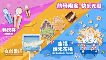 “五一”期间,围绕航母吉祥物“吉福”“抱豹”“妃妃”形象,精心打造了“吉福甜品站”,特别推出“吉福爆米花桶”“畅饮杯”“文创雪糕”三类“文创+餐饮”类产品,广受亲子家庭喜爱。与此同时,全新打造的主题旗舰店正式营业,相继推出“吉福”“抱豹”“妃妃”毛绒玩具、钥匙扣、文具、雨伞等航母专属文创产品共计60余种,进一步丰富游客购物体验。“五一”期间,文创类产品销售业绩亮眼,占商品总销售额的30%,充分展现文创产品的吸引力及市场价值,提升了景区文化内涵及品牌形象。