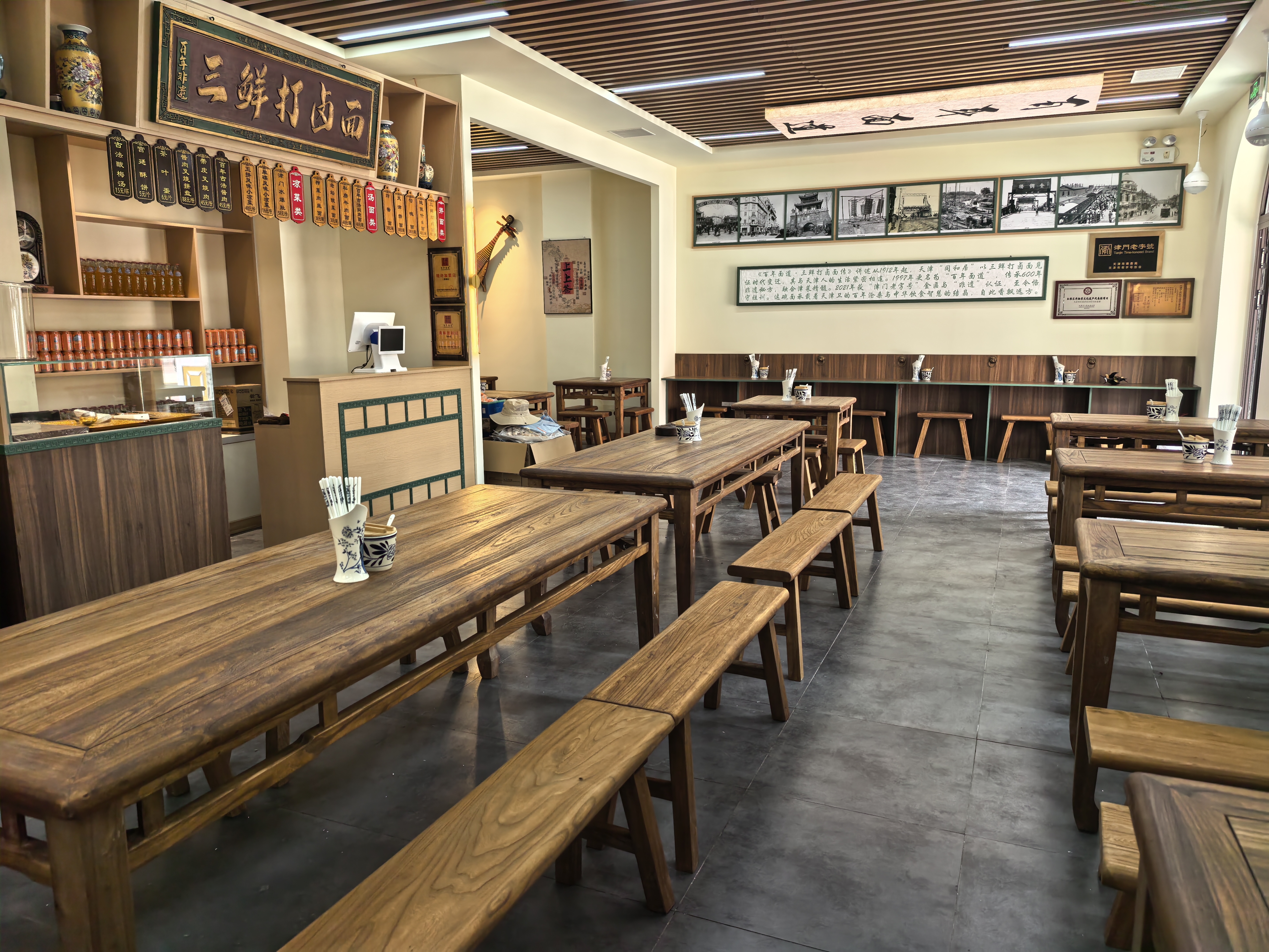 青砖灰瓦间,一缕面香穿越百年。百年面道,原名同和居,始于一九一二年,历经五代,师承至今,守护百年非遗秘方。