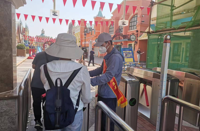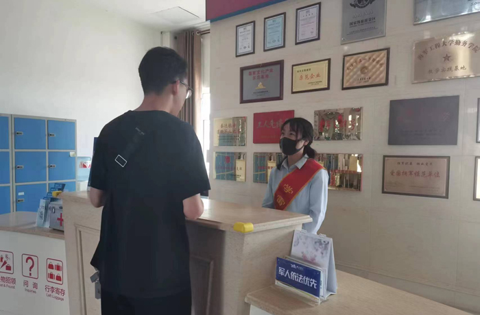 伴随暑期到来,航母景区迎来游客接待高峰,全国各地研学团队纷至沓来。活动当天,恰逢景区迎接约1400人的大型学生团队来访研学。上午9点,学生团队到达,志愿者已在安检口等候,引导学生从快速通道进入;并由文明引导员引领至检票区域排队等候、有序通过,同时区分好团队和散客的检票通道和排队区域,确保其他游客及时检票入园,避免了排长队等候的问题。志愿者们主动服务,耐心解答游客问题。在景区文明引导员、文明旅游志愿者的引导下,航母景区入园秩序井然,受到了游客的一致好评。