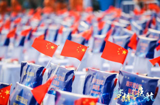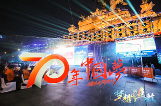 夜间的航母熠熠生辉,时值祖国70周年庆,在场上千人共唱《我和我的祖国》,庆祝祖国70周年华诞,一度掀起阵阵高潮。