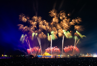 “焰火+”加出新活力。泰达航母坚持创新引领、突破升级,深度挖掘“焰火+”旅游产品带来的无限潜力,相继推出“焰火+音乐节”“焰火+演出”“焰火+非遗”等多种形式沉浸式主题焰火演出,不断激发“焰火+”新活力。凭借高品质的焰火项目及其带动效应,泰达航母荣获“第三批国家级夜间文化和旅游消费集聚区”称号。在夜场焰火项目的带动下,泰达航母2024年游客量同比增长57.4%,收入同比增长48.2%。航母夜场活动期间,景区周边区域酒店入住率达100%,为区域文旅经济发展注入了强劲动力。