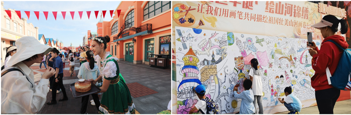 黄金周8天,园区内各类演出124场轮番上演,为游客带来丰盛的“文化大餐”。限时回归的摩托车极限挑战类演出《极炫飞跃》,与王牌演出《航母风暴》《飞车特技》一同为游客带来惊险刺激的感官体验,演出场场爆满、欢呼声阵阵。俄罗斯风情街上,面包蘸盐·俄式最高欢迎礼、中秋“洋嫦娥”情景演绎以及俄罗斯风情歌舞街头秀,为游客带来沉浸式异域风情体验。国庆主题互动打卡区内手绘墙、点赞墙、打卡拍照墙、创意地面滚球抽奖活动吸引众多亲子游家庭参与。