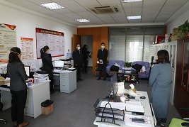 曹总先后来到航母办公楼检测点、临时观察室、值班室、会议室、相关业务部室进行实地检查,与在岗工作人员深入交流,重点了解泰达航母疫情期间防控工作和复工开园情况。