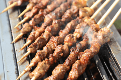 鲜嫩飘香的烤肉串、解渴冷饮泰式奶茶、酸梅汤柠檬茶