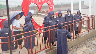 董事长刘占中一行先后前往风情街24小时值班室、南北岛排水口、海军训练区等区域,现场察看港池水位情况以及各点位防汛物资准备情况。