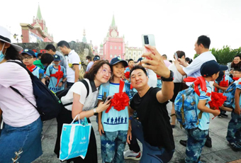今天的天津迎来今年入汛以来的最强降水日,暴雨倾盆、狂风大作;但在泰达航母国家国防教育示范基地,又是另一番欢天喜地的景象:在雨微停、天渐晴的吉时,锣鼓齐鸣、醒狮起舞,全国各地慕名而来的五十六名青少年集结于此,他们身披戎装、胸戴红花、整齐列队、光荣“入伍”,与父母告别。即将独立开启一段充满未知与挑战的旅程!
